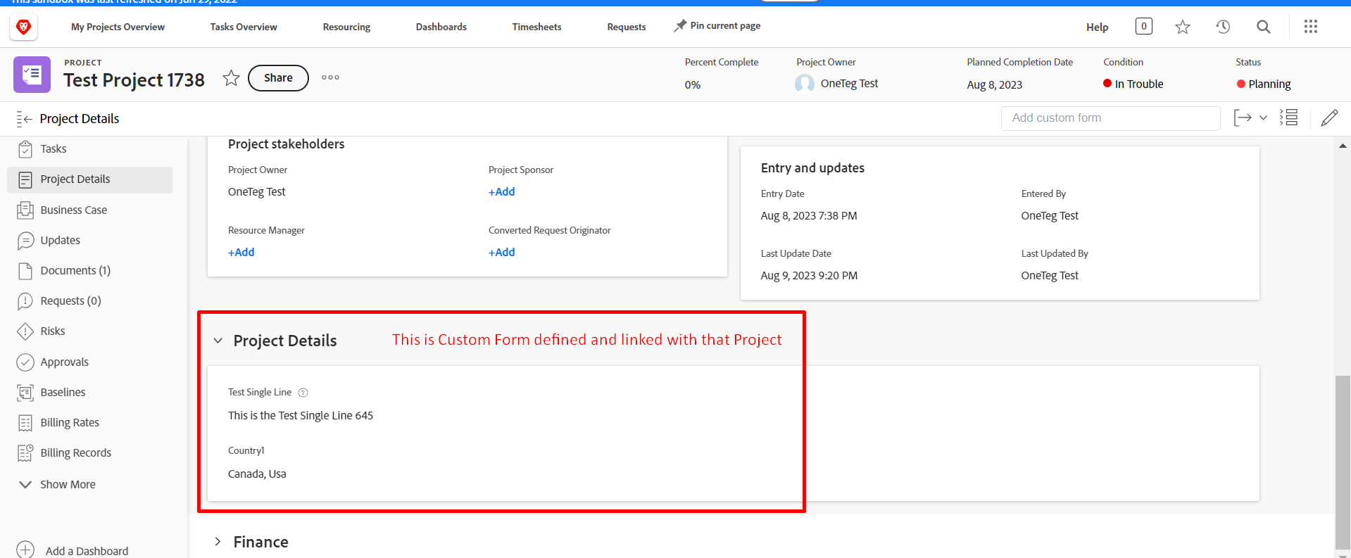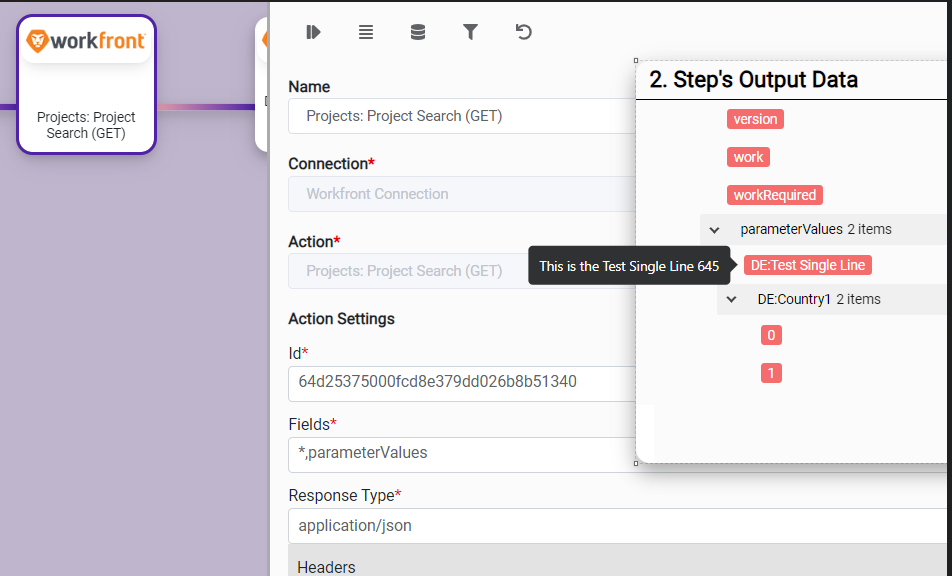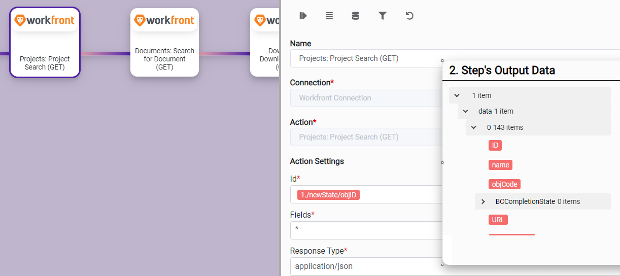Action Description | Find and get project by ID. Retrieves project all data section and custom forms data |