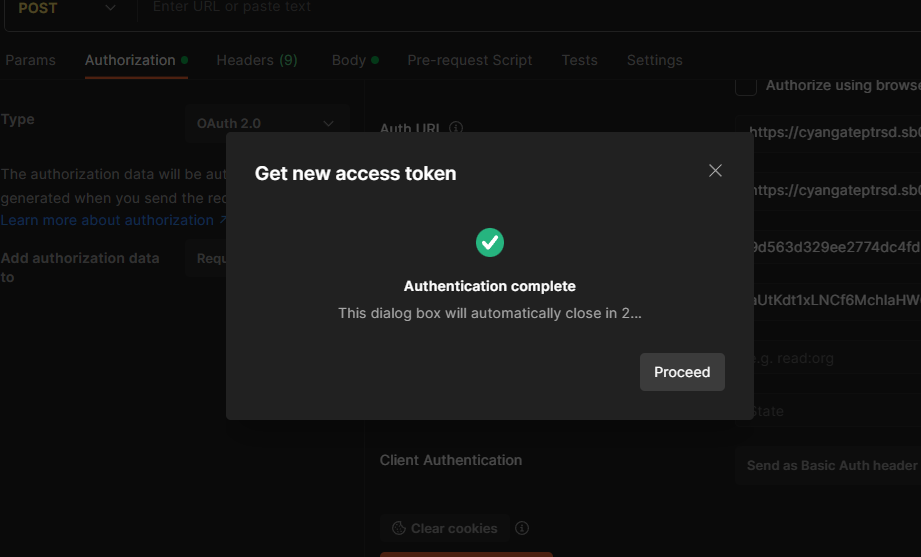Get an Access token. Fill in the OAuth details in Postman and click on the Get Access token button.