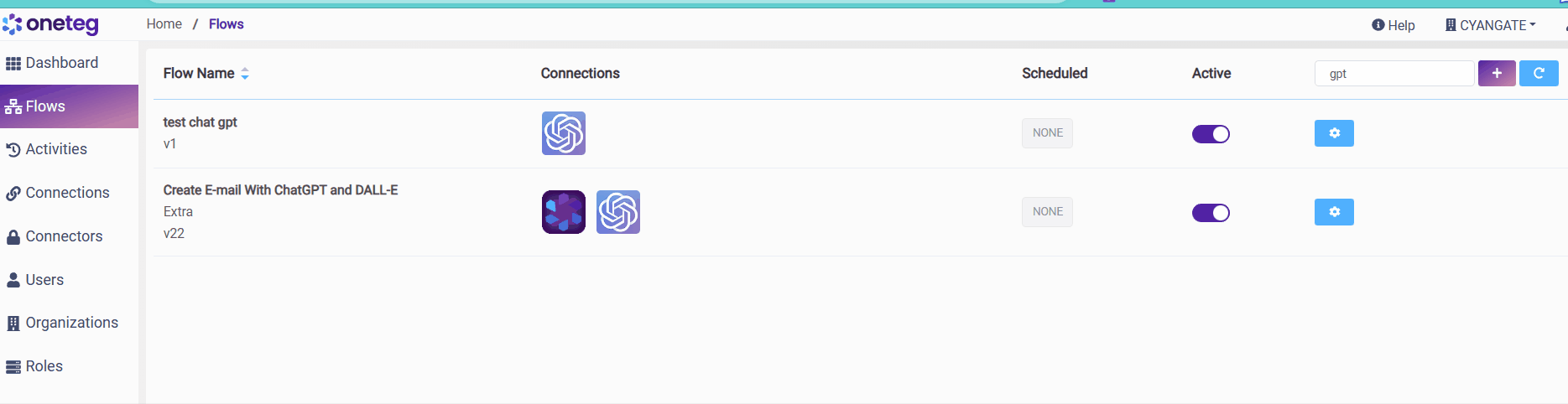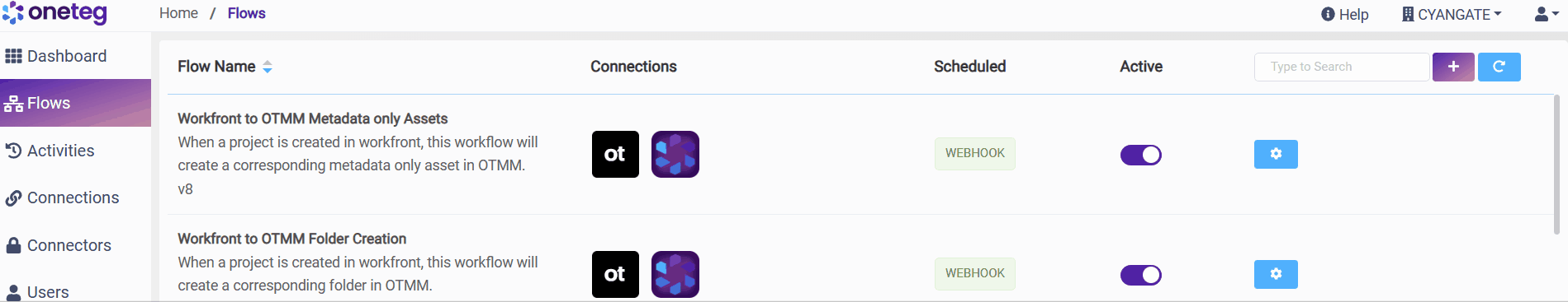 The activeness column allows users to manage the on/off state of the flow. It can be either active or passive.