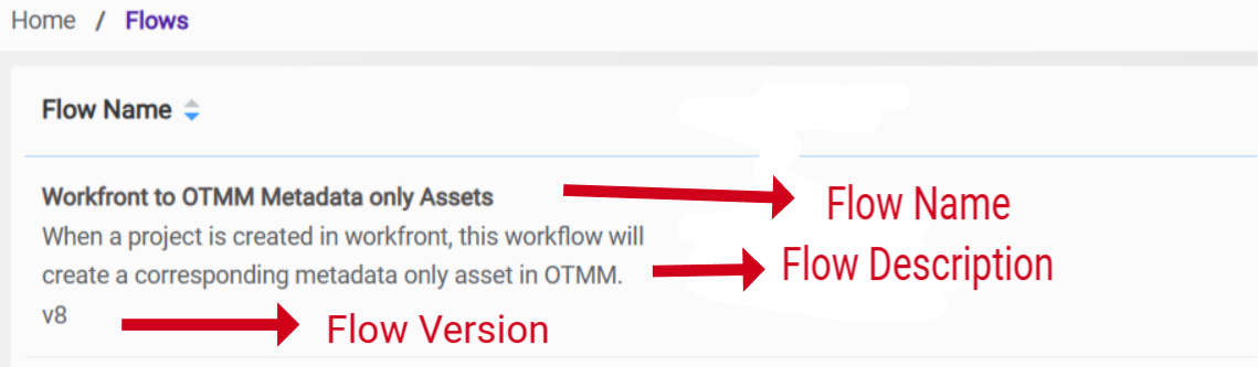 Please note that the following information is provided in the Flow Name column: Flow Name, Flow Description, and Flow Version.