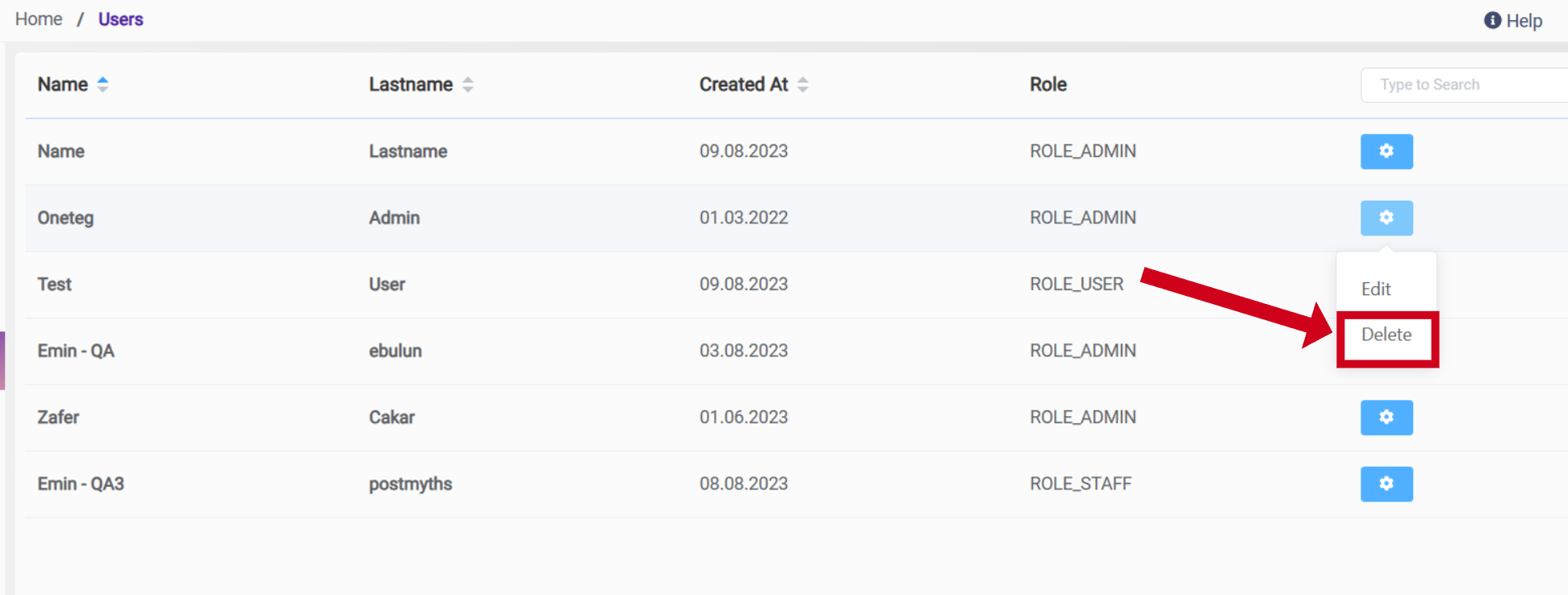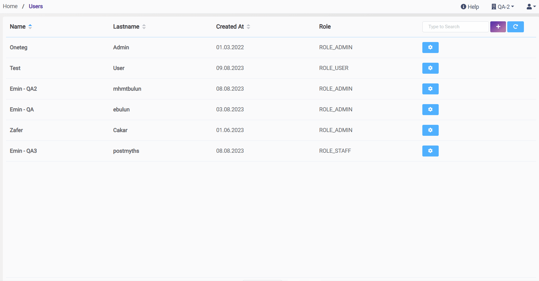 On this page, users can view each user's Name, Lastname, Creating Date, and Role. Additionally, under Settings, users can be edited or deleted. Also, if the flow is currently running, it can be stopped using the "Flow Stop" option under the settings.