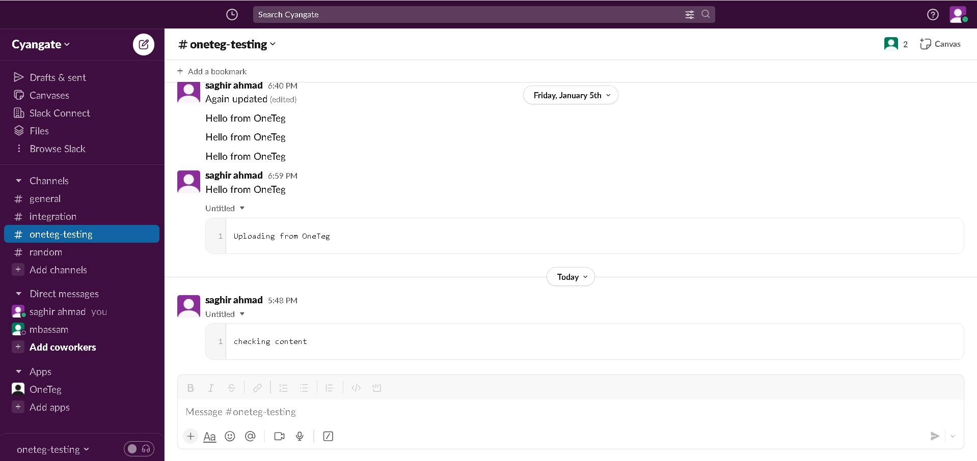 Reinstall to Workspace , This would create both User and Bot token, but we would use User token in our OneTeg application.
