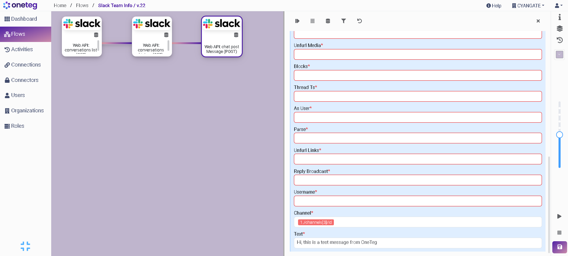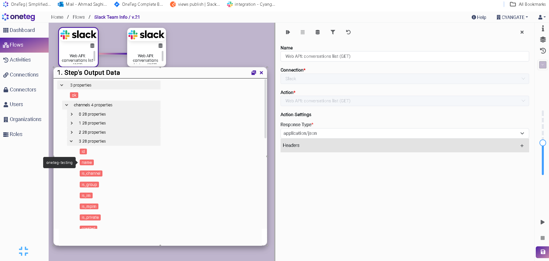 We use the action Web API: Conversations list (GET) action to get the list of all channels in our workspace.