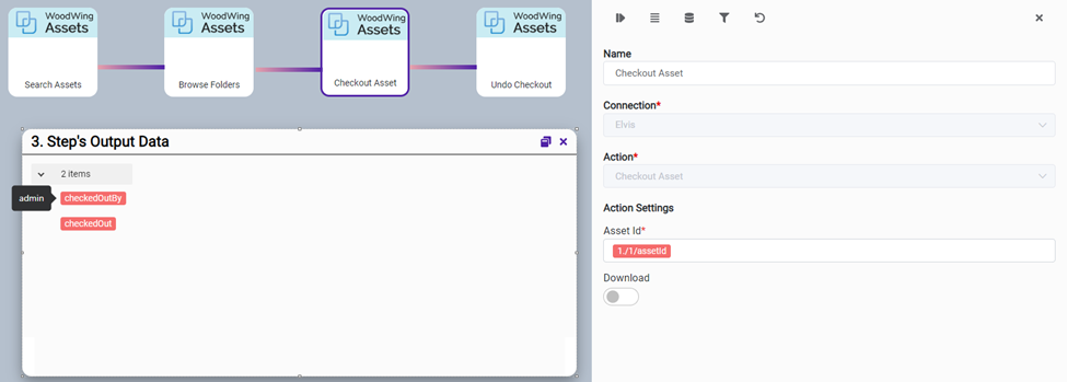| Asset Id | String | The Assets Server id of the asset to be checked out. Required |