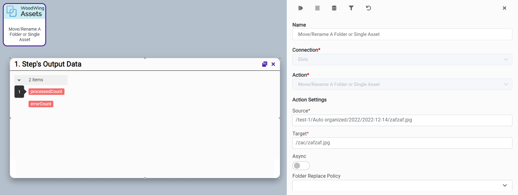 Action Description | Move or rename a folder or a single asset. You can combine a rename operation and a move operation. Just specify the new target path. When you move or rename a folder, all assets contained in the folder will also be moved to the new location. The subfolder structure will be kept intact. | ||