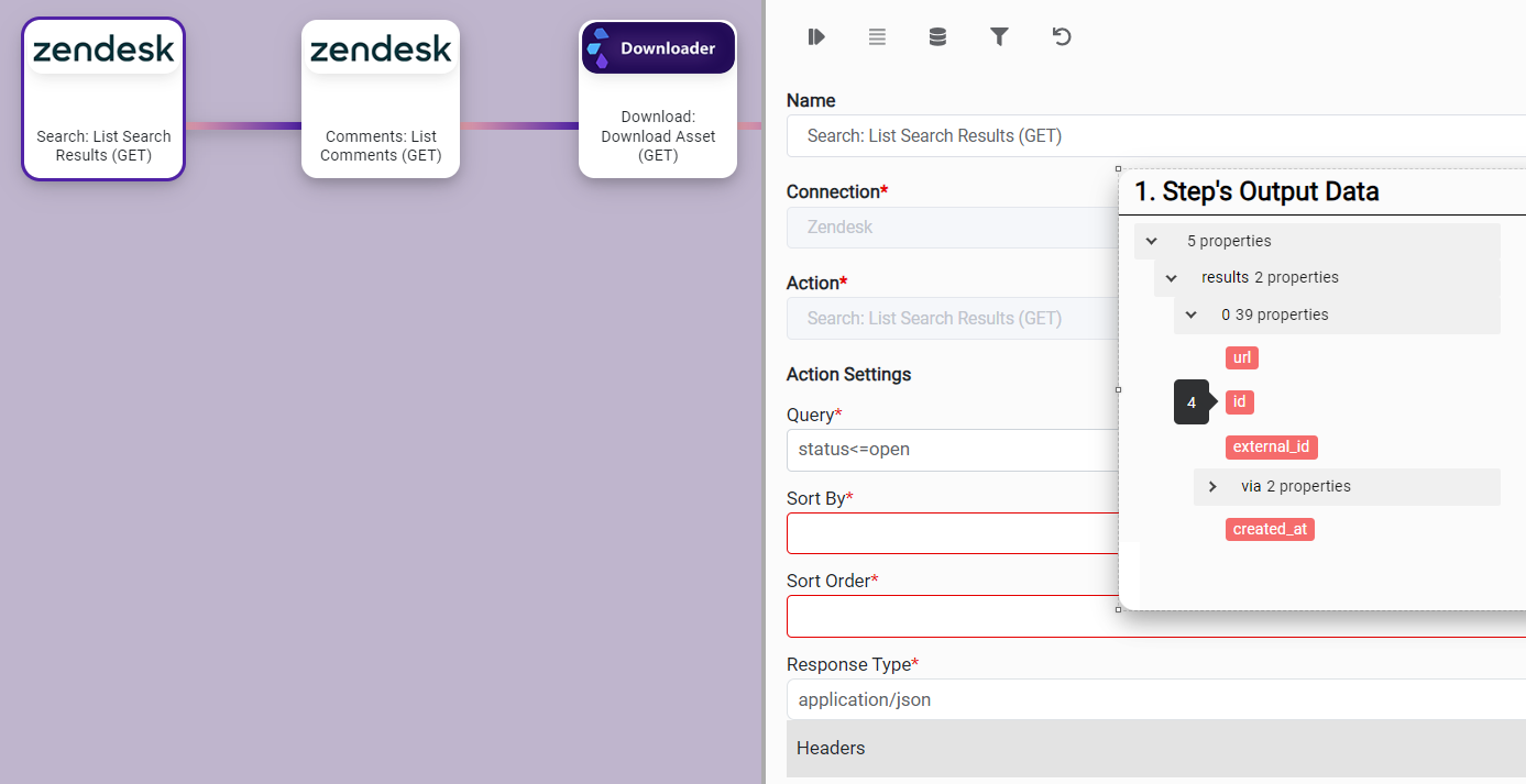 Action Description | The Search API is a unified search API that returns tickets, users, and organizations. You can define filters to narrow your search results according to resource type, dates, and object properties, such as ticket requester or tag | ||