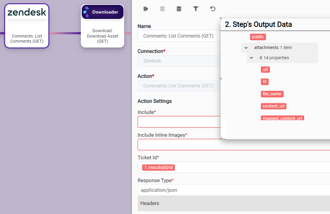 | Include Inline Images* | String | Default is false. When true, inline images are also listed as attachments in the response |