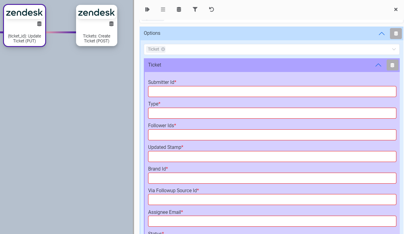 | object | false | false | Write only. See Creating a ticket with a new requester |